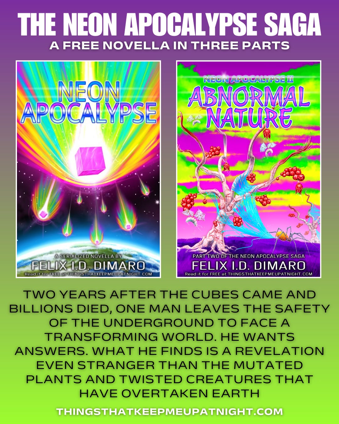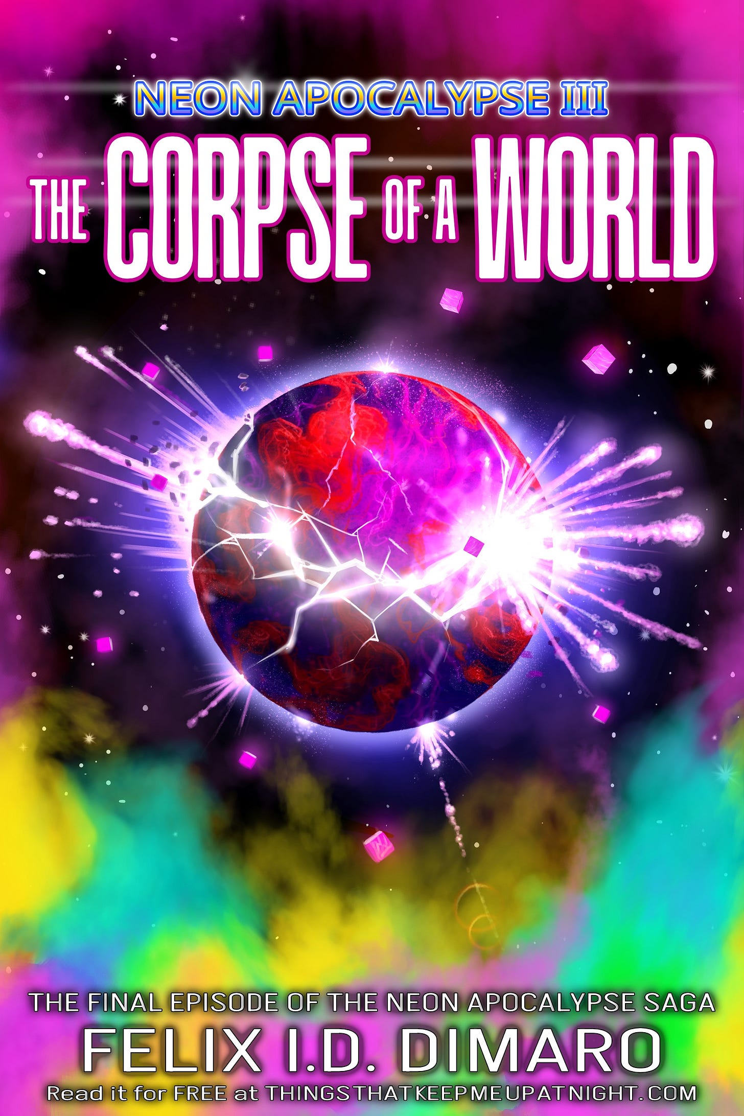 No matter how prepared for disaster the above countries might be, there would be no surviving the Neon Apocalypse. Parts one and two of my three-part miniseries are already out. Here is the cover of Neon Apocalypse III: The Corpse of a World, which is set to be released next Thursday, December 11. But because you’re here, you can read it a week early. Just click the link below the cover.